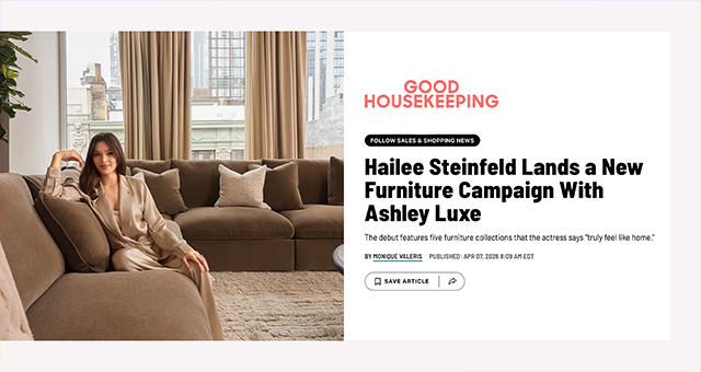 We partnered with style icon and A-list actress Hailee Steinfeld as the face of the creative campaign. She has an A-list closet... but (like most of us when we enter our closets), she still has nothing to wear until she takes a fresh look at her Ashley Luxe sectional. The kind of luxury you’re supposed to be precious about.